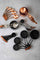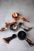 材質選用不鏽鋼,分別鍍上不同的顏色,而每一支量匙把手末端都細心地繫上了帶有復古銅扣的皮革吊帶,不僅方便成組收納,更讓這組工具在懸掛時成為廚房牆面上的一件裝飾藝術品。